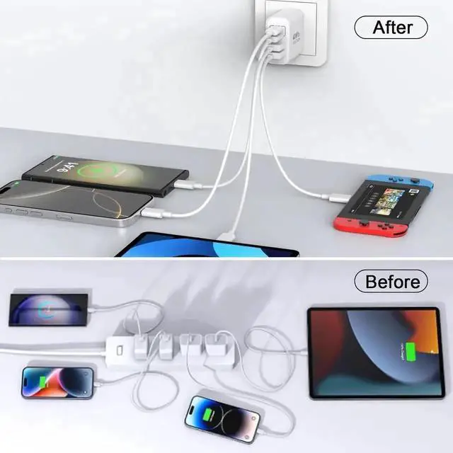 ![Alt view image 5 of 7 - USB C Charger Block, [2 Pack] 40W 4 Ports Type C Charger Fast Charging Cubes PD+QC 3.0 Power Adapter Multiport Brick Type C Box Compatible for iPhone 16/15/14/13/12/11 Pro Max, Android Phones](https://c1.neweggimages.com/productimage/nb640/C1E6S251012036RA290.jpg)