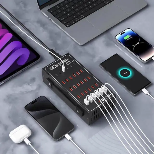 JVFYI 30-Ports Charging Station, 150W USB C Charger, USB-C Smart Charger, 30-in-1 Desktop Charging Hub, Multi Ports Charging Station Organizer for iPhone, iPad, Samsung, Tablets and Other Electronics
