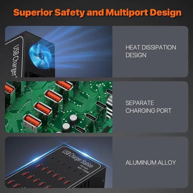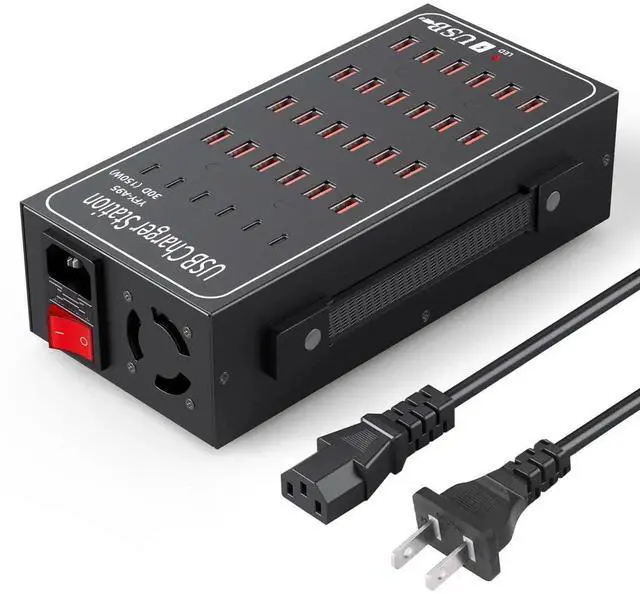 [Multi-port USB charger with USB-C]Our multi-port charging station has 30 ports (24 USB-A and 6 USB-C), each port provides 5V/2.4A power, total output power is 150W. The USB charger can charge up to 30 different devices at the same time, which greatly improves work efficiency.