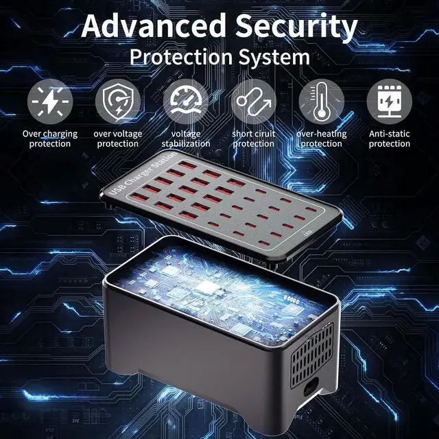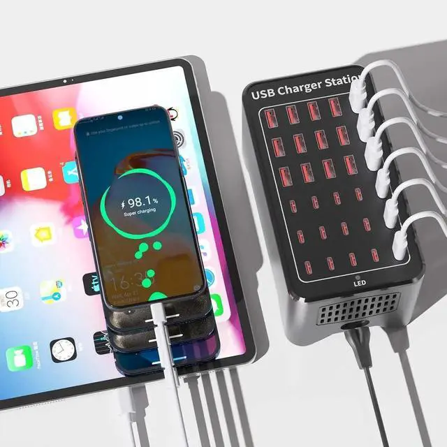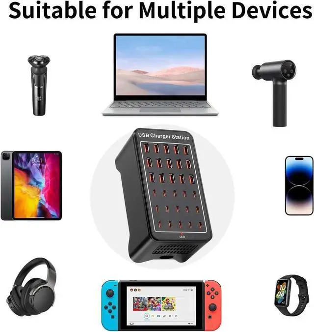 150W USB C Charger Block Power Output for 30 Ports, the USB Station Can Charge Any Combination of Smartphones, Tablets or Other of USB-charged Devices.