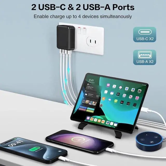 Allowing you to charge up to 4 devices at the same time, 4-port is at the same time, will share with total 40W