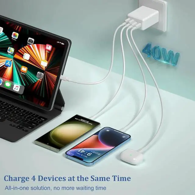 ![Alt view image 6 of 6 - [3-Pack] USB C Wall Charger, 40W 4-Port USB C Charger Block, Fast Charging Block Dual Port PD + QC 3.0 Wall Plug Multiport Type C Compatible with i-Phone 14/13/12/11/Pro Max/XS, Android Phones,Tablet](https://c1.neweggimages.com/productimage/nb640/C601S2604150JKXHF14.jpg)
