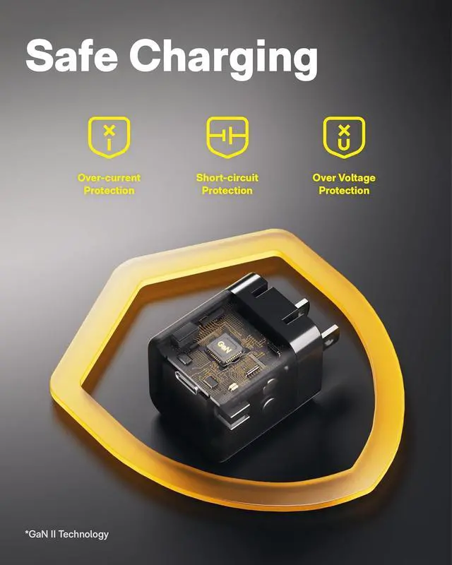 Advanced GaN II Safety System: Smarter heat dissipation and triple-layer protection (over-voltage/overheating/short-circuit) for worry-free overnight charging