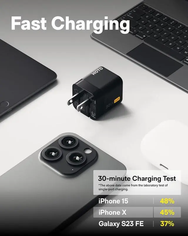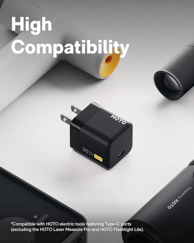 HOTO 30W USB C Charger, Foldable GaN PPS Compact Fast Wall Charger for iPhone 16/15/14/13, Galaxy S24 Ultra/S23, HOTO Electric Tools, with 3.3ft USB C Cable 30W for Business, Travel