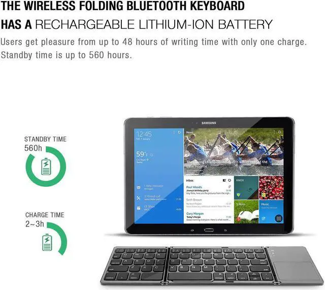 The collapsible keyboard is quipped with a touch pad.High sensitivity touchpad, Ambidextrous,Good factility.
