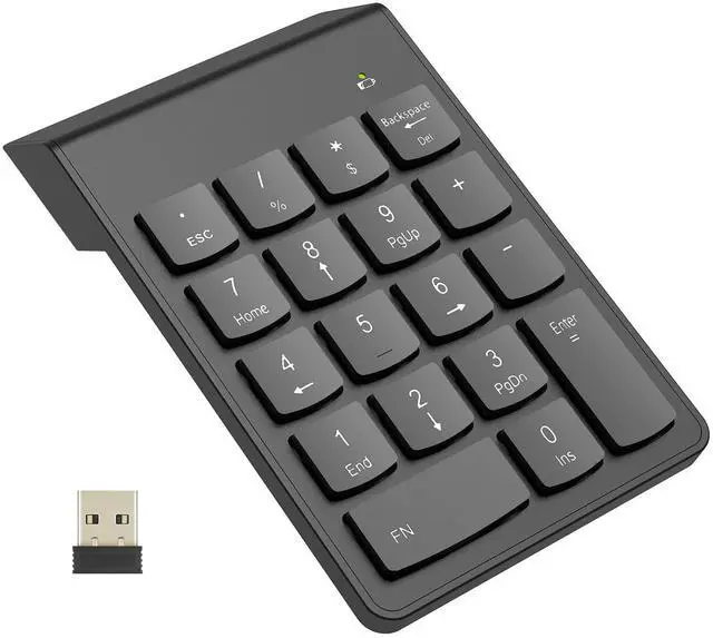Plug and Play: wireless number pad has no wire, it connects computer and laptops via a USB adapter, no drivers needed, plug and play.