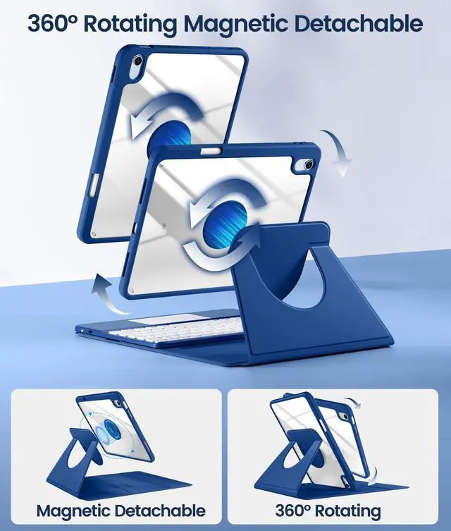 - Premium & durable stain-resistant PU and transparent PC cover, protects your tablet (A16) 11th 10th gen from shocks, scratches, for iPad keyboard case combines sleek aesthetics with long-lasting durability. The magnetic detachable design allows 360° rotation for flexible viewing and typing angles.