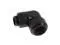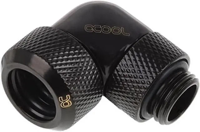 Alphacool's Eiszapfen connector series is the high-end execution of these tried-and-true fittings! Everything you want in a compression fitting is here: highflow, form, processing and colour. A refusal to compromise in development and production has made the Eiszapfen series into what it is. Fittings are available in brilliant chrome or a deep, matte black, which will fit excellently into any system. A special procedure binds the outer coating firmly to the surface, improving the longevity of the intense colour and preventing any chipping or peeling of the coating. Every connector now has the Alphacool logo, which along with their distinctive shape makes them unmistakable! The union nut's slanted corners allow the O-ring to be pressed firmly against the HardTube, ensuring it sits even more securely than before. This allows for greater safety in transport. This fitting has a 1/4" thread on one side and is thereby compatible with 95% of components. The other side fits a 13mm acrylic or brass tube. This fitting is bent 90 in the middle to avoid complicated hose connections. The threaded side is rotatable for maximum flexibility.
