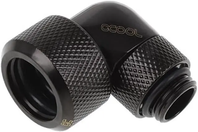 Alphacool's Eiszapfen connector series is the high-end execution of these tried-and-true fittings! Everything you want in a compression fitting is here: highflow, form, processing and colour. A refusal to compromise in development and production has made the Eiszapfen series into what it is. Fittings are available in brilliant chrome or a deep, matte black, which will fit excellently into any system. A special procedure binds the outer coating firmly to the surface, improving the longevity of the intense colour and preventing any chipping or peeling of the coating. Every connector now has the Alphacool logo, which along with their distinctive shape makes them unmistakable! The union nut's slanted corners allow the O-ring to be pressed firmly against the HardTube, ensuring it sits even more securely than before. This allows for greater safety in transport. This fitting has a 1/4" thread on one side and is thereby compatible with 95% of components. The other side fits a 16mm acrylic or brass tube. This fitting is bent 90 in the middle to avoid complicated hose connections. The threaded side is rotatable for maximum flexibility.