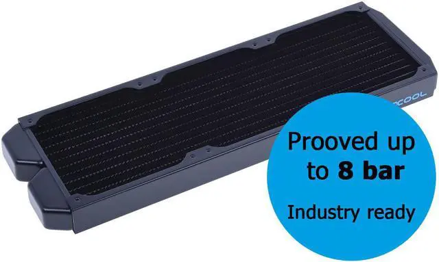 Everyone who uses watercooling needs a radiator, and everyone has different requirements for the heat exchanger. Alphacool has been a trendsetter on the scene for developing and improving radiators for years. That's why these models are among the first radiators to really earn the descriptor "full copper"! All the main elements, not just the fins and channels, but also the channel heads are made of copper. Material-wise, this is a big advantage, and one where other radiators fall by the wayside. The interior is structurally at the same level as radiators from other manufacturers, and split channel heads clearly show the path of the cooling fluid. A high flow rate raises the cooling power of the whole system. A flat end chamber also allows for more free space in the installation, since it shortens the total length. The installation of the radiators, as well as the fans and radiator faceplates, is easy to do with this series: the M3 threads are standard in the radiator sector, affordable and available in all lengths. Even the dreaded mishap of turning the screws in too deeply won't lead to costly damage with this radiator: an inner protective edge stops the screw before it can come into contact with the fins. The fin spacing was chosen so that the radiator could reach its optimal cooling performance even with slow or medium-speed fans. This is not only comfortable in terms of background noise, but also puts no constraints on the choice of fans.