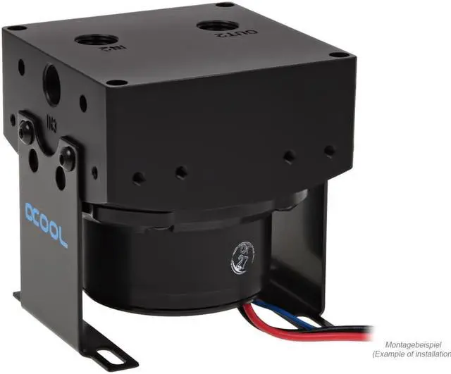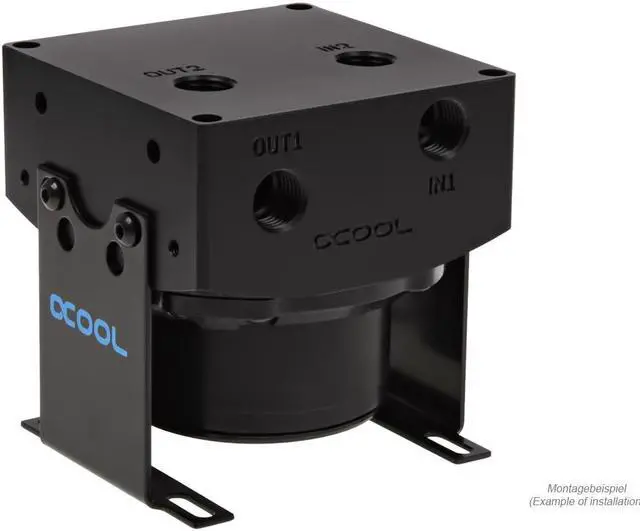 The principle: On the bottom there is space for the Laing D5 or VPP655 pump and in the front or on top the inlet and outlet. For even more flexibility, the Eisdecke gets three inlets and two outlets. Another feature is the new holder to give the entire unit a stable footing and complete the overall visual image. Optional installation in 3.5 "drive bay is possible. The top can be converted by using the suplementary element, whitch is given as an accessory, to an complete reservoir which has also been revised.