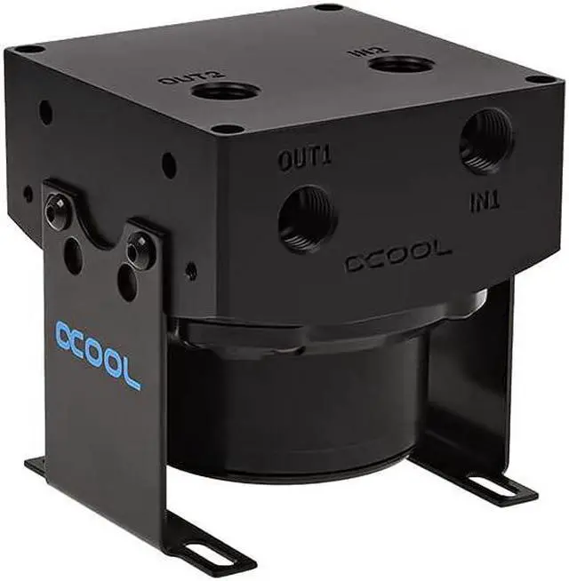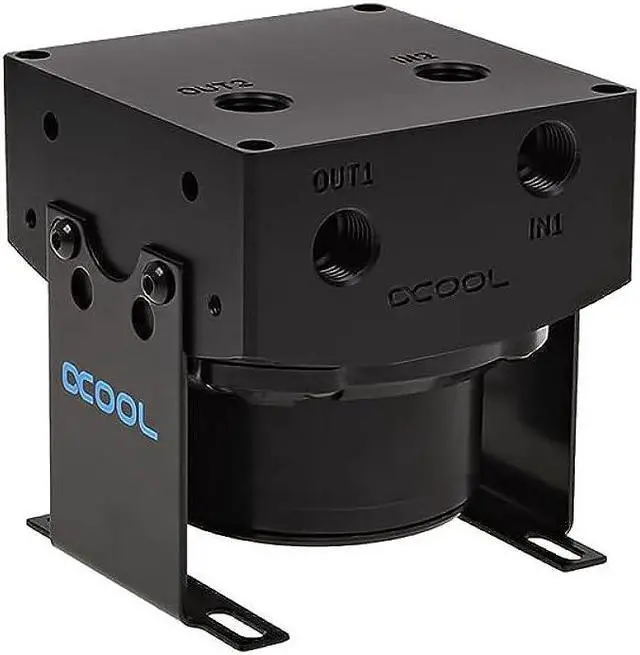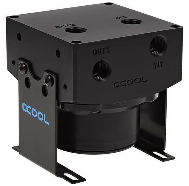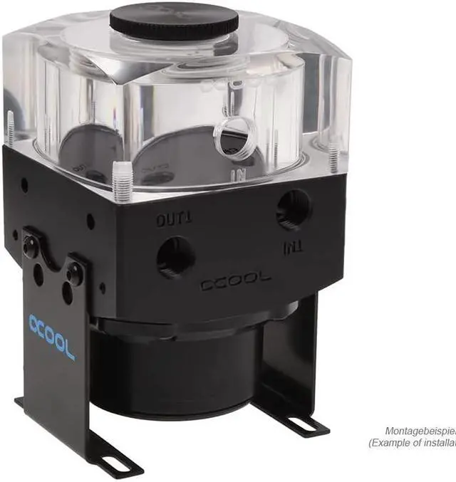 The principle: On the bottom there is space for the Laing D5 or VPP655 pump and in the front or on top the inlet and outlet. For even more flexibility, the Eisdecke gets three inlets and two outlets. Another feature is the new holder to give the entire unit a stable footing and complete the overall visual image. Optional installation in 3.5 "drive bay is possible. The top can be converted by using the suplementary element, whitch is given as an accessory, to an complete reservoir which has also been revised.