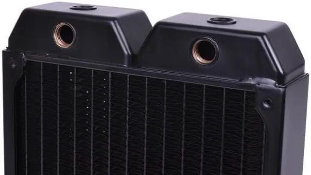 Fin spacing is always an important factor in radiator design. The new series from Alphacool has a fin design which allows it to perform extremely well even with slow-spinning and medium-speed fans. This is not only pleasant thanks to the fact that it avoids unnecessary noise; it also means that the choice of fans that can be used with these radiators is not restricted. Even mounting and installation of fans and radiator grills is easy and versatile with these radiators. Even the dreaded insertion of a screw too far into the radiator does not result in expensive damage.