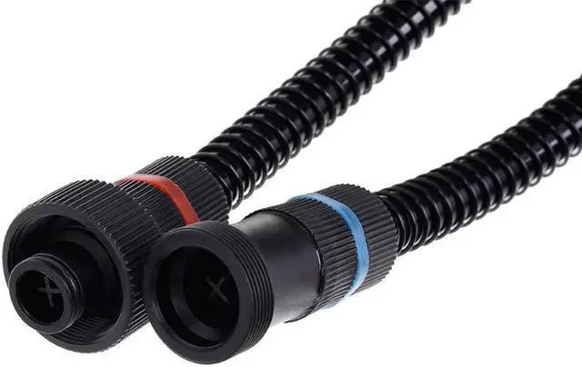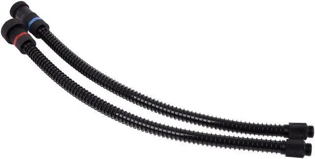 With the Eisbaer Quick-Connect Extension Set, expanding the cooling loop of an Eisbaer or Eiswolf GPX-Pro cooler with additional components is simple. For example, it's easy to add another radiator, an additional cooler, or other any other components. The set consists of two 32cm long hoses in 11/8 format, encased in anti-kink springs. This prevents bending in the hoses, and thereby prevents interruptions in the water flow. Safety is our top priority. Two ends have straight connectors, pre-installed on the hoses. The only thing you need to do is screw these into the corresponding G1/4" threads.