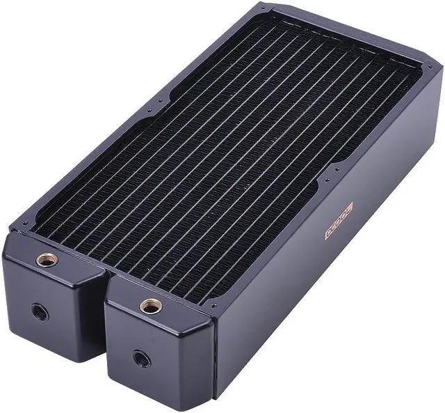 Fin spacing is always an important factor in radiator design. The new series from Alphacool has a fin design which allows it to perform extremely well even with slow-spinning and medium-speed fans. This is not only pleasant thanks to the fact that it avoids unnecessary noise; it also means that the choice of fans that can be used with these radiators is not restricted. Even mounting and installation of fans and radiator grills is easy and versatile with these radiators. Even the dreaded insertion of a screw too far into the radiator does not result in expensive damage.