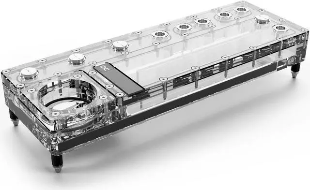 Alphacool's push-mounting allows for a tight fit of the Distro Plate on the case panel or radiator and allows for easy removal for maintenance or expansion projects. Game ChangerIt has an integrated reservoir as well as a pump top for VPP or D5 pumps and is offered as a 240mm or 360mm variant, each with left or right positioning of the pump top. This makes the Core Distro Plate ideal for custom water loops where CPU and graphics card (s) are to be cooled simultaneously. Due to the arrangement of the G1/4" connections, complicated tubing paths will be a thing of the past in the future.