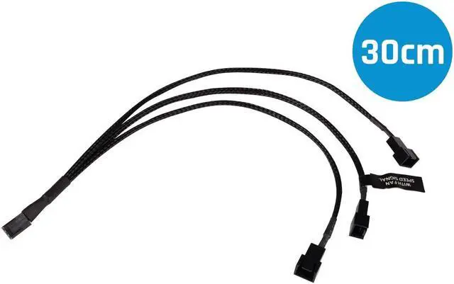 Product InformationSleeved 3-pin to 3x 3-pin Y-splitter splitter cable. Distributes power and RPM signal to multiple fan headers. The sleeving offers additional protection, stability and a longer service life. Technical detailslength30 cmconnections3 pin to 3x 3 pinmaterialplastic, sleevedColorblack