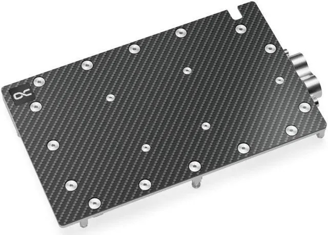 The Alphacool ES GPX Copper/Carbon water cooler with backplate was developed for the Alphacool Enterprise Series. Due to the positioning of the connections, the hosing of the cooler in the server rack is significantly simplified. The top of the cooler is made of carbon. This makes the water cooler lighter compared to Alphacool's Eisblocks with acetal or acrylic tops. Thanks to the compact design, only 1 slot is needed to mount the cooler in the server rack instead of 1.5 slots as before. This additional space saving is one more argument for using the ES GPX Copper/Carbon graphics card water cooler.