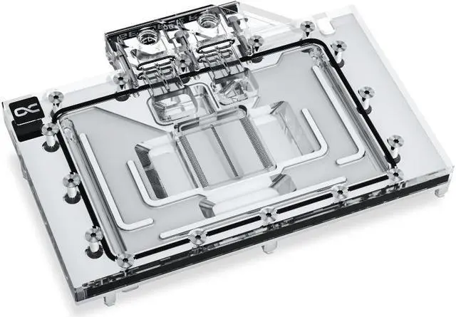 The next generation - the Alphacool Eisblock Aurora water cooler for Geforce RTX 4XXX graphics cards. In order to dissipate the enormous waste heat of this graphics card generation in the best possible way, numerous optimizations were carried out on the water cooler compared to the previous model. The fin structure has been adapted and enables very good water flow while at the same time increasing the cooling surface. The modified nozzle plate with improved inflow engine ensures optimal water distribution on the cooling fins.