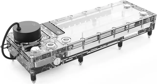 Alphacool's Push-Mounting allows for a secure fit of the reservoir on the case panel or on the radiator and allows for easy disassembly for maintenance or expansion projects. GamechangerThe Core Flat Reservoir is offered as a 240mm or 360mm version, with right positioning of the pump top. This makes the reservoir ideal for custom water loops. An additional drain port is located on the side, allowing for easy and uncomplicated draining of the Flat Reservoir. High-quality material selection & brilliant lightingAlphacool's Core Flat Reservoir is made of high-quality acrylic glass, allowing for an unobstructed view of the coolant and brilliant illumination by the built-in digital addressable aRGB LEDs.