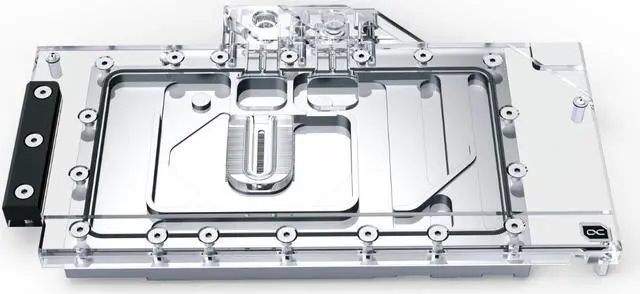 The Alphacool Eisblock Aurora Acrylic GPX graphics card water cooler with backplate combines style with performance. Extreme cooling performance and an extensive digital RGB lighting characterize it. Experience and technical know-how from more than a decade have gone into the development, without making any technical compromises. The Eisblock Aurora Acryl GPX is a significant evolution of the previous Alphacool graphics card water cooler, which has been improved in every area. More performance! During the development of the Eisblock Aurora Acryl GPX graphics card water cooler, emphasis was naturally placed on increasing performance.