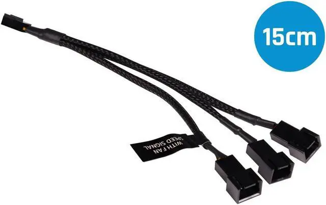 Product InformationSleeved 3-pin to 3x 3-pin Y-splitter splitter cable. Distributes power and RPM signal to multiple fan headers. The sleeving offers additional protection, stability and a longer service life. Technical detailslength15cmconnections3 pin to 3x 3 pinmaterialplastic, sleevedColorblack