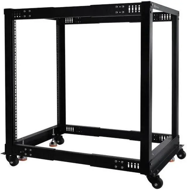 The Alphacool ES 19" Open Frame server rack with adjustable depth is a mobile and modular solution for server systems. It is made of robust steel and offers a secure load capacity for the server units. The rack can be moved effortlessly thanks to the included wheels. For stationary installation, it can be moved Four height-adjustable feet included. Fastening to a base plate is also possible. ModularThe Alphacool ES 19" Open Frame server rack is available in different sizes: 12U, 15U, 18U and 25U. Regardless of the height, the server rack can be modularly adjusted at any time to a depth of 59-104cm (23 - 40.9 inches). The Specified mounting holes enable easy installation of the individual rack units. With the help of the 360° rotating wheels, the open frame server rack can be moved effortlessly. Reliable stabilityThe Open Frame server rack from Alphacool stands for durability and, with its stable adjustable feet, offers a load capacity of up to 600 kg. The high-quality wheels are designed for a weight capacity of up to 300 kg. Alternatively, the server rack can be securely attached to a base plate using the pre-drilled holes. In addition, the rack meets the EIA/ECA-310 standard, which ensures a universal design and ensures compatibility with most network rack devices. Technical dataDimensions (L x W x H) 110.5 x 60.8 x 76.4 cmHeight with wheels 84.4 cmMaximum mounting depth104cmMinimum mounting depth59cmmaterialsteelWeight 19.7 kgLoad capacity with adjustable feet600kgLoad capacity with wheels300kgServer rack standardEIA/ECA-310Colorblack