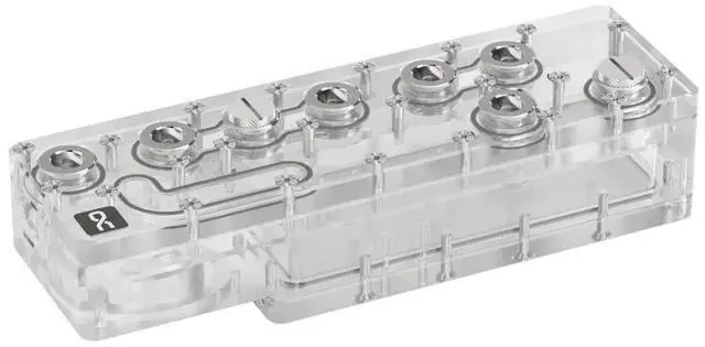 : 15360). The Core Distro Plate is compact in design, making it ideal for custom water cooling configurations. Additional drain ports located on the side and bottom allow for quick and clean draining of the distro plate. Installation is carried out using the included 90° universal mounting bracket, which enables easy and flexible positioning within the case. Technical DataDimensions (L x W x H) 240 x 73 x 59, 6mmMaterialAcryl (and brass thread) Pump compatibilityD5/VPP | DDCThreads11x G1/4" (1x fill port and 2x drain port) Volume147mlMaximum working temperature60°CPressure tested0, 8 BarQuantity digital aRGB LEDs1