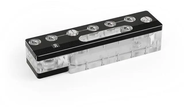 Note: The Apex Distro Plate for the North XL can also be installed in other cases compatible with the Core Distroplate 90° Universal Bracket. Dimensions and compatibility details are available in the technical specifications. Pump not included. Technical DataDimensions (L x W x H) 290 x 73 x 69mmMaterialAcryl (Aluminum cover and brass thread) Pump compatibilityD5/VPP | DDCD5/VPP | DDCThreads9x G1/4" (1x fill port and 1x drain port)