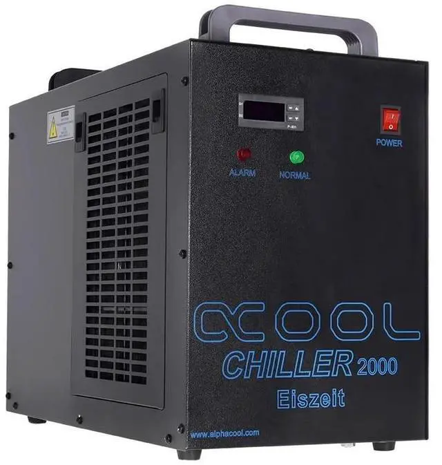 The Alphacool Eiszeit is a compressor chiller with a maximum cooling capacity of 1500W. Unlike most so-calledchillers or flow-through chillers, the Eiszeit features a powerful integrated pump. With the Eiszeit, you get a compressor chiller from Alphacool. This allows youto maintain your system, or multiple systems, at a preset temperature and have it automatically regulated. The Eiszeit achieves a maximumcooling capacity of 1500W. You can easily enter the settings on the Eiszeit's display. Adjustments in fine increments of 0.3 ° Kelvin are possible. If necessary, you can alsoachievetemperatures significantly below room temperature.