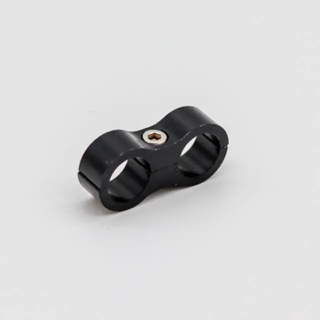 To install, simply remove the central set screw and separate the clamp into it's two halves. Place both halves around the 2 tubes to be managed, and secure the halves back together by replacing that set screw.