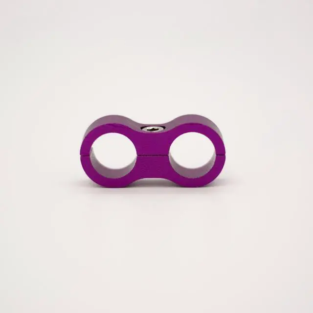 To install, simply remove the central set screw and separate the clamp into it's two halves. Place both halves around the 2 tubes to be managed, and secure the halves back together by replacing that set screw.