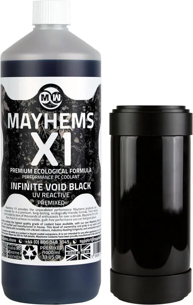 The X1 is based on a proprietary blend of refined vegetable extracts that are fully biodegradable and have a very low order of oral toxicity. Mayhems X1 is recommended for use in systems where an ‘ environmentally friendly’ product is preferred. It also contains non-toxic (GRAS) multi metal inhibitors formulated to protect water cooling equipment and associated systems against corrosion, scale and biological fouling, thus prolonging equipment life and thermal efficiency.