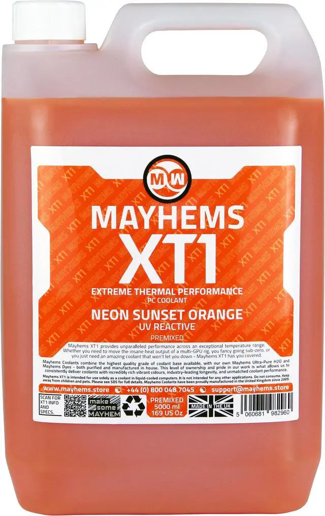 Mayhems - PC Coolant - XT1 Premix - Thermal Performance Series - UV Fluorescent | 5 Liter - Neon Sunset Orange (MXTP5LOR)