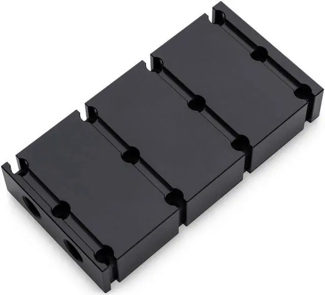 The Black Acetal EK-Scalar Terminal Quad 2-slot is a semi-parallel high-quality interconnection for connecting four same type EK-Vector or EK-FC water blocks in a single, sturdy unit. Connecting multiple graphics has never been this easy and aesthetically pleasing!