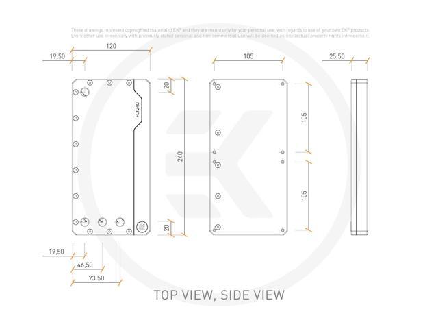 - Alongside the reservoir is a black anodized aluminum cover under which the Addressable D-RGB LED strip is placed. Proper LED implementation is one of the main focus points of EK so that there are as few visible "LED hotspots" as possible.