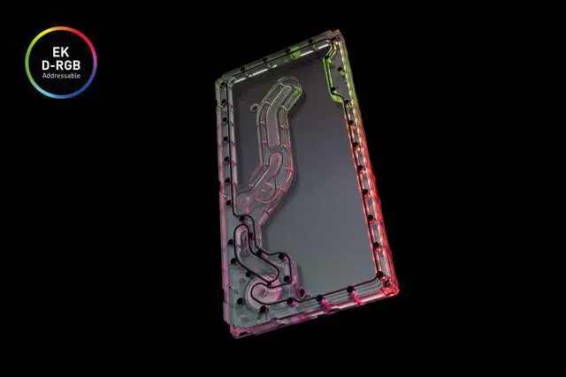 The EK-Classic Distroplate Front PC-O11D SPC PWM D-RGB - Plexi, is specifically designed to provide a comprehensive water cooling solution for the most popular water cooling case on the market, the Lian Li PC-O11D. It embodies the EK-Classic ideals of budget-conscious SPC pump and simplistic design, offering an affordable solution for incredible aesthetics.