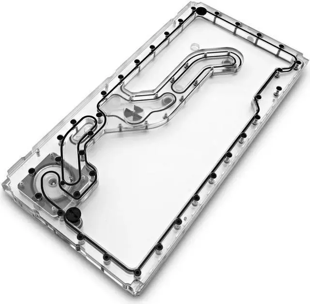 • This EK-Classic Distroplate is a custom water cooling reservoir, routing and pump solution
