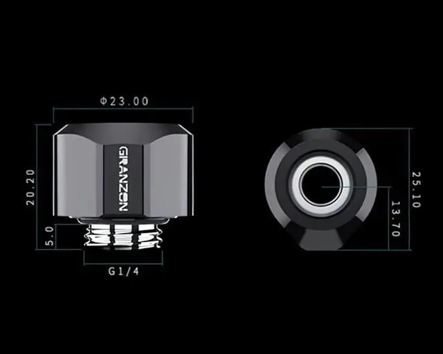 The Granzon G 1/4in. Rigid 14mm OD Fitting has a sleek design that enables easy toolless installation. A convex handle allows the fitting to be installed hand tight easily with no chance of damaging the finish. This also makes for a sleek, modern aesthetic.