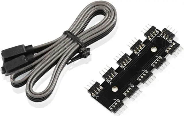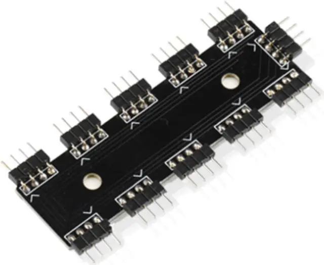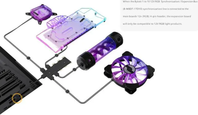 The Bykski 1 to 10 RGB 12V Synchronization / Expansion Bus allows you to expand your 12V motherboard LED header.