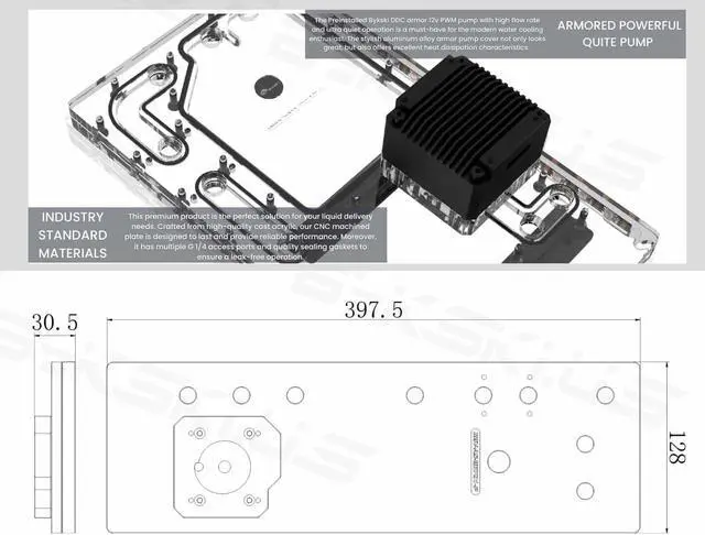 The Bykski Distro or Distribution Plates provide a distinct and innovative way to enhance your loop's appearance. These plates are customized to fit your specific case, creating a sleek and parallel look. Moreover, they can come equipped with an OPTIONAL inline pump, allowing you to power your entire loop from the centerpiece.