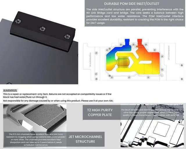 SpecificationsThis is a repair or replacement-only item. Returns are not accepted on compatibility issues or if the block has had water/fluid run through it.