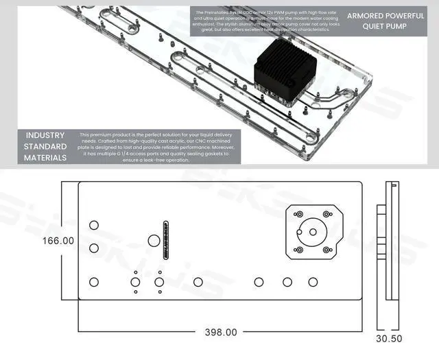 The Bykski Distro or Distribution Plates provide a distinct and innovative way to enhance your loop's appearance. These plates are customized to fit your specific case, creating a sleek and parallel look. Moreover, they can come equipped with an OPTIONAL inline pump, allowing you to power your entire loop from the centerpiece.