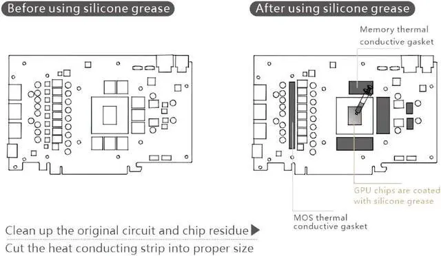 Manufacturer reserves right to alter block design to expand compatibility. Delivered item may not 100% match pictured item. Product does NOT come with English instructions. Please see product gallery images for install guide if available. Generally, thermal pads should be installed on the card where the block has corresponding raised contact points with the exception of the GPU core, which uses thermal paste. Installing pads on other components can lead to improper contact and poor performance.