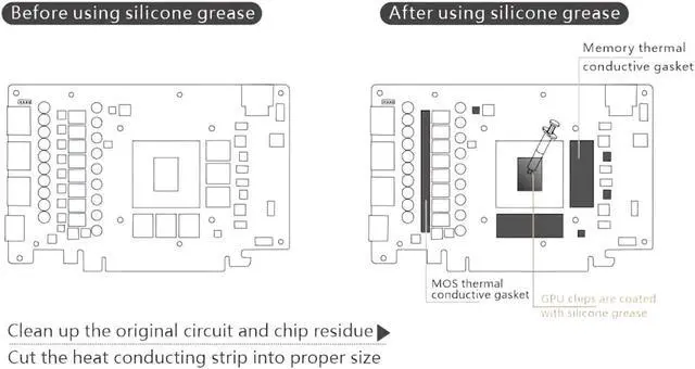 Manufacturer reserves right to alter block design to expand compatibility. Delivered item may not 100% match pictured item. Product does NOT come with English instructions. Please see product gallery images for install guide if available. Generally, thermal pads should be installed on the card where the block has corresponding raised contact points with the exception of the GPU core, which uses thermal paste. Installing pads on other components can lead to improper contact and poor performance.