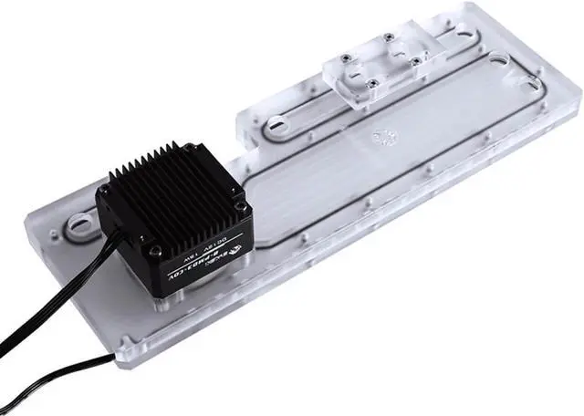 The Bykski Distro or Distribution Plates provide a distinct and innovative way to enhance your loop's appearance. These plates are customized to fit your specific case, creating a sleek and parallel look. The already installed inline pump allows you to power your entire loop from the centerpiece.