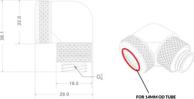 - 1 x Bykski G 1/4in. Rigid 90-Degree Rotary Fitting Adapter forKEY_TAB 14mm OD Tubing