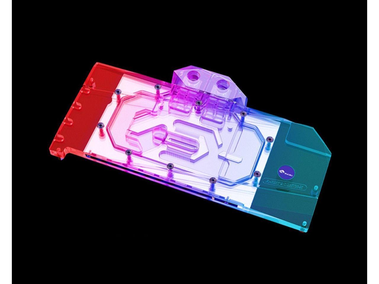 - HIGH-QUALITY DESIGN: Full acrylic (PMMA) and Ultra-high purity purple copper plate, which is the highest quality in these characteristics next to silver. Includes GPU block with backplate and all the mounting hardware, thermal paste/pads, and installed A-RGB (RBW) 5v LED Strip. Everything needed for installation is included with your block no need to pick up extra parts to get cooling your GPU.