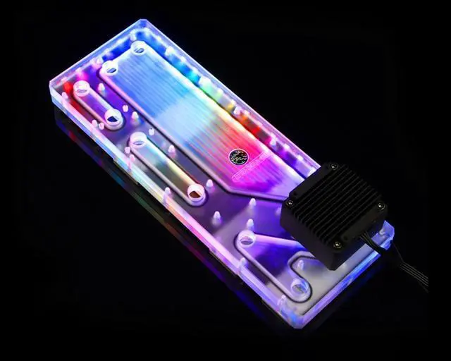 The Bykski Distro or Distribution Plates provide a distinct and innovative way to enhance your loop's appearance. These plates are customized to fit your specific case, creating a sleek and parallel look. Moreover, they can come equipped with an OPTIONAL inline pump, allowing you to power your entire loop from the centerpiece.