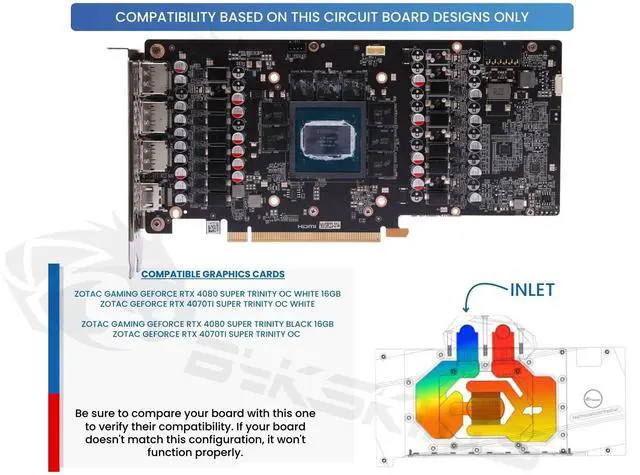 This N-ST4080SRTNOC-X full-coverage block directly cools the video card core (GPU), graphics memory (RAM), and voltage regulator modules (VRM). By directly cooling these components, you can achieve great temperatures and reach higher overclocks while extending the overall lifespan of your card by running at lower temperatures.